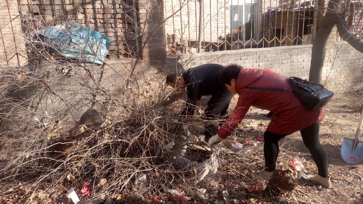 看安馨養(yǎng)老服務(wù)中心后院里參加清掃衛(wèi)生的青年團員志愿們拿著笤帚、鐵鍬、鋸等用具。開始了緊張的忙碌,鋸枯樹枝的,清掃院落的,清倒垃圾的,大家分工合作,經(jīng)過了一上午的清掃整理,整個院落更加的干凈整潔了。